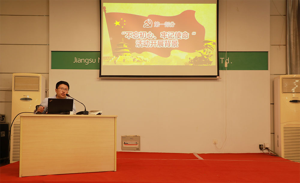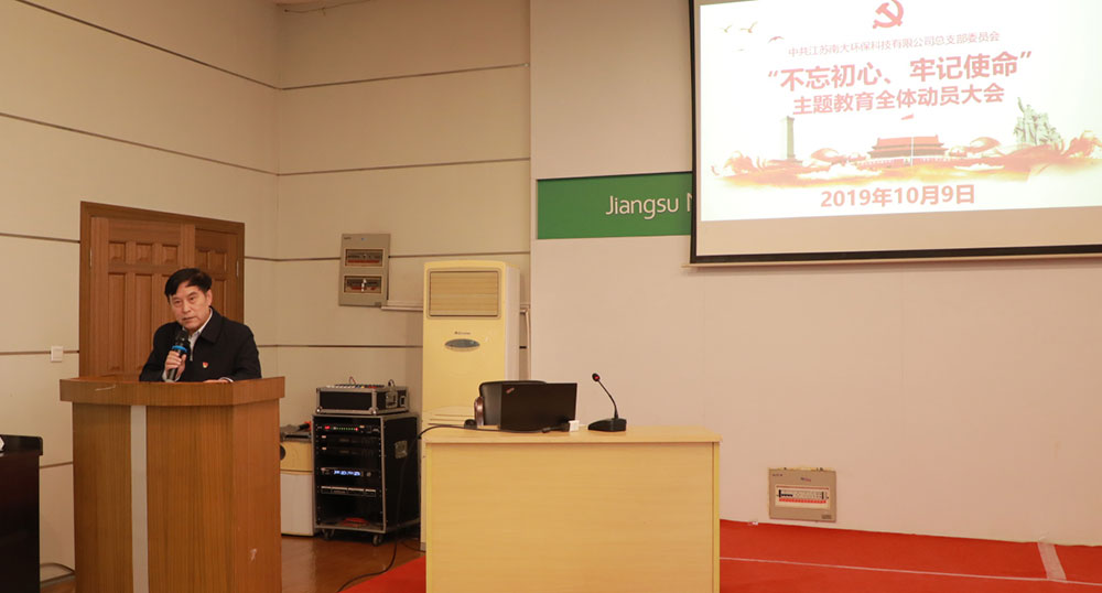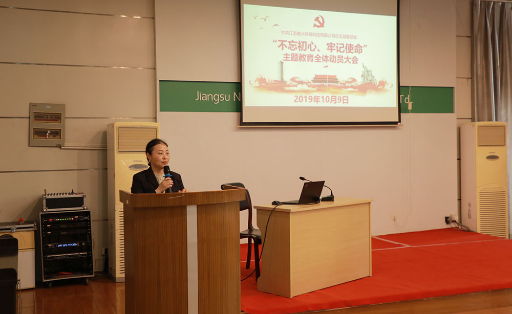 公司召開“不忘初心、牢記使命”主題教育動員大會 2019年10月9日, 公司召開“不忘初心、牢記使命”主題教育動員大會,進一步激發全體黨員干部的工作熱情和奮斗精神。公司總經理呂振華出席會議并作指導講話,黨總支書記陳標作動員講話,黨總支組織委員駱玉琴主持會議,黨總支宣傳委員臧傳利作主題教育專題黨課。公司領導班子成員,黨總支委員、全體中層干部,全體黨員及入黨積極分子參加會議。 全體黨員積極分子參加會議 呂振華總經理在講話中強調了開展“不忘初心、牢記使命”主題教育的重大意義,堅持不忘初心、繼續前進,要求公司全體員工要以奮斗為前提,把主題教育與落實公司發展戰略相結合、與經營管理工作相結合、與提升團隊素質相結合、加強作風建設相結合,做到主題教育與公司各項工作兩手抓兩促進。 呂振華總經理出席會議并作指導講話 黨總支書記陳標作動員講話,對開展主題教育進行部署。陳書記希望全體同志認真學習下發的資料,讀原著、學原文、悟原理,將主題教育活動同本職工作結合起來,積極主動抓好落實,各黨支部要結合“兩學一做”、“學習強國平臺”,聚焦理論學習有收獲、聚焦思想政治洗禮、聚焦干事創業敢擔當、聚焦清正廉潔做表率,推動各項工作再上新臺階。 黨總支書記陳標作動員講話 黨總支組織委員駱玉琴主持會議 動員講話后,黨總支宣傳委員臧傳利為全體作了題為《不忘初心、牢記使命,深入學習習近平生態文明思想》的專題黨課,黨課對第二批“不忘初心、牢記使命”主題教育學習任務、總要求、時間、目標進行了系統學習,并對習近平生態文明思想的初心及使命進行了深入學習,動員全體南大環保人牢記為中國生態環境事業做貢獻的初心及使命。黨總支宣傳委員臧傳利作主題教育專題黨課